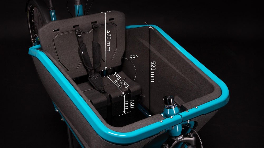Die meisten Bikes sind darauf ausgelegt, dich und vielleicht ein bisschen Gepäck von A nach B zu bringen. Der Cargo Hybrid Rahmen kann allerdings viel mehr – nämlich den sicheren und komfortablen Transport von weitaus größerer und schwererer Last bis insgesamt 220 kg. Im optionalen Kindersitz fahren sogar bis zu zwei Kinder mit. Zugleich legt das Chassis selbst bei voller Beladung ein stabiles, unkompliziertes Handling an den Tag, das seine Qualitäten vor allem im Stadtverkehr voll ausspielt. Der kraftvolle, Lasten-spezifische Bosch Motor wurde unauffällig unten am Sattelrohr positioniert und es gibt Platz für bis zu zwei Akkus, die sich in der Nähe des Rahmenschwerpunkts befinden.