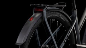 Apropos komfortabel: Die Suntour Luftfedergabel, eine gefederte Sattelstütze und der verstellbare Vorbau sorgen auf allen Strecken für ein angenehmes Fahrverhalten. Bei jedem Wetter zuverlässig und sicher gebremst wird mit kraftvoll zupackenden hyraulischen Shimano Scheibenbremsen. Als Sahnehäubchen fahren ein stabiler integrierter Gepäckträger IC 3.0 und praktisches Zubehör mit: Schutzbleche und Lichter. Also alles da, was es für ambitionierte Zweirad-Entdeckertouren braucht!