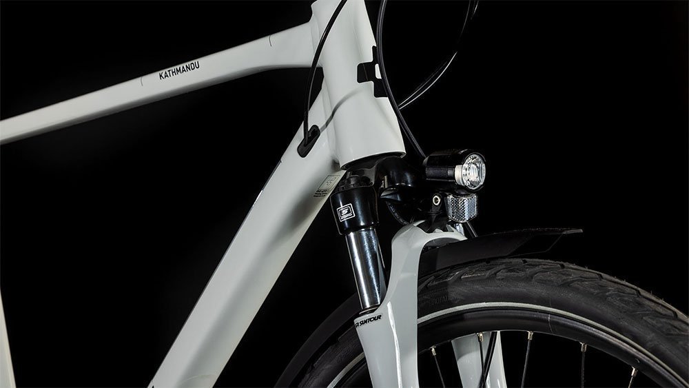 Der Kathmandu Rahmen vereint sämtliche für die Serie typischen Highlights, setzt aber noch etwas obendrauf. Beispielsweise geht der überarbeitete integrierte Gepäckträger IC 3.0 nahtlos und formschön in CUBE’s Acid Schutzbleche über. Dazu gibt’s am Hinterrad eine Aufnahme für eine Flat Mount Scheibenbremse sowie einen Seitenständer. Seine cleane, aufgeräumte Optik verdankt das Chassis den im Smooth Welding Verfahren geschweißten Rohrverbindungen. So viel zur Optik. In Sachen Funktion hat CUBE den Hinterbau mit einer Steckachse ausgerüstet und sich für ein konfiziertes Steuerrohr für optimierte Stabilität und Lenkpräzision (selbst bei voller Beladung) entschieden. Und dank innen verlaufender Züge wechselt das Bike dauerhaft geschmeidig die Gänge und die Schaltung muss kaum gewartet werden. CUBE hat an alles gedacht – nur die Zahnbürste, die musst du wohl selbst einpacken.