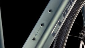 Der Carbonrahmen des Nulane Hybrid C:62 orientiert sich stark an schnellen, leichten und robusten Gravel-Bikes, seine elegante Linienführung und cleane Optik lassen auf hohe Qualität schließen. Dank genügend Reifenfreiheit können bis zu 50 mm breite Reifen – sogar mit Schutzblechen – montiert werden. Außerdem hat Cube an Gepäckträger-Montageoptionen am Heck und an der Vollcarbongabel gedacht, damit das Bike auf dem täglichen Arbeitsweg ebenso top funktioniert wie bei der Radtour am Wochenende. Das Cockpit für den Bosch Antrieb fügt sich formschön ins Oberrohr ein, dazu gibt’s eine Mini Remote am Lenker. Wer sich noch mehr Kapazität und Reichweite wünscht, bestückt den Rahmen mit einem zusätzlichen 250 Wh PowerMore Akku. Was noch? Eine versteckte Sattelklemme, eine Direct Mount Kettenführung, Aufnahmen für einen Flat Mount Seitenständer, ein Boost Hinterbau und die Möglichkeit zur Integration eines UDH. Fazit: Mit diesem effizienten Alleskönner hast du überall und immer die Nase vorn!