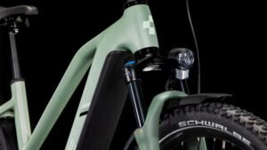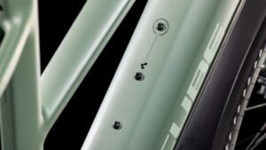 Auf den ersten Blick sieht der Nuride Hybrid Trapezrahmen vielleicht unspektakulär aus, doch wer genau schaut, wird von seiner subtilen Eleganz und seinen innovativen Details begeistert sein. Neben einer Federgabel mit 100 mm Federweg für ein Plus an Fahrkomfort und Kontrolle hat CUBE das Chassis mit großzügiger Reifenfreiheit (sogar inklusive der mitgelieferten Schutzbleche) ausgestattet. Im Inneren verlaufende Züge unterstreichen die cleane Optik des Rahmens und verursachen kaum Wartungsaufwand. Ebenso harmonisch ins Design integriert sind der Bosch CX Antrieb und der PowerTube Akku. Außerdem gibt’s einen Kettenschutz sowie ein UDH für einfachere Ersatzteilverfügbarkeit. Was noch? Serienmäßig verbaute Schutzbleche, Lichter und ein Seitenständer. Da kann das nächste Touren-Abenteuer kommen!