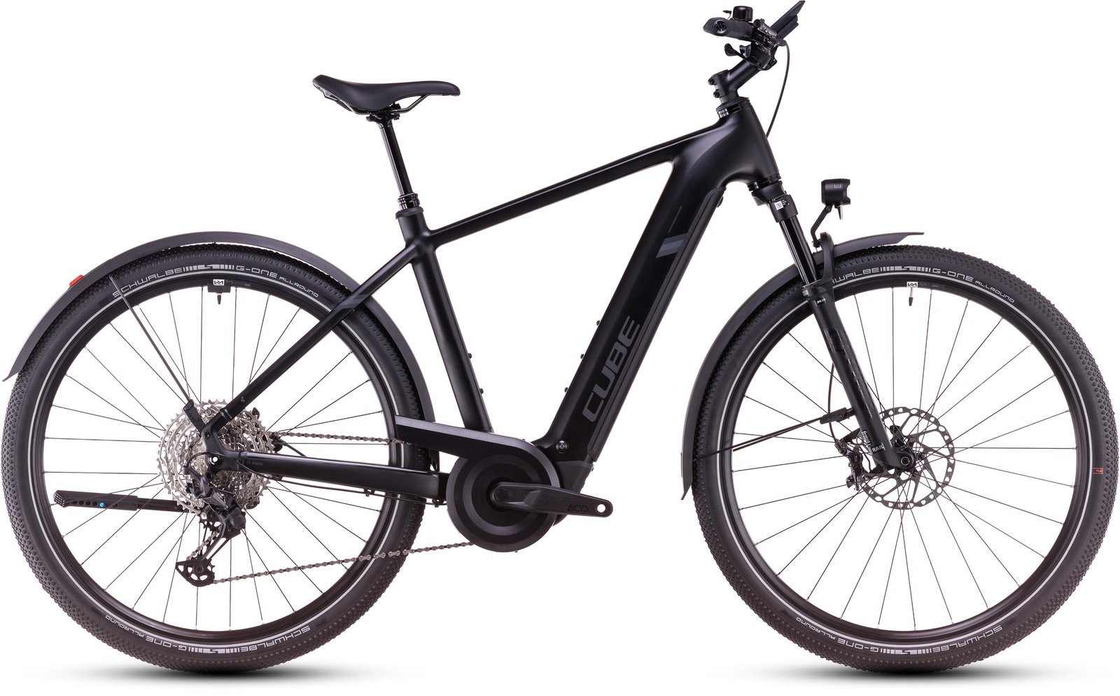 Für angenehmen Fahrkomfort auf holprigen Strecken ist die einfach verstellbare Fox 34 AWL Sport Federgabel mit geschmeidigen 100 mm Federweg zuständig. Dazu hat die 12-fach XT Schaltung von Shimano dank ihrem weiten Übersetzungsbereich auch auf steilen Anstiegen immer den passenden Gang parat. Auf die Newmen Performance 30 Laufräder hat CUBE breite, griffige Schwalbe G-One Allround Reifen aufgezogen, die mit jedem Straßenbelag oder Trail zurechtkommen. In puncto Sicherheit und Bremskraft bei jedem Wetter leisten die kraftvollen hydraulischen Shimano XT Scheibenbremsen zuverlässige Dienste. Viel praktisches Zubehör – Schutzbleche, Lichtanlage, Seitenständer – erledigt den Rest. Keine Frage, dieses Bike ist zu jeder Zeit für alles bereit. Auf ins Abenteuer!