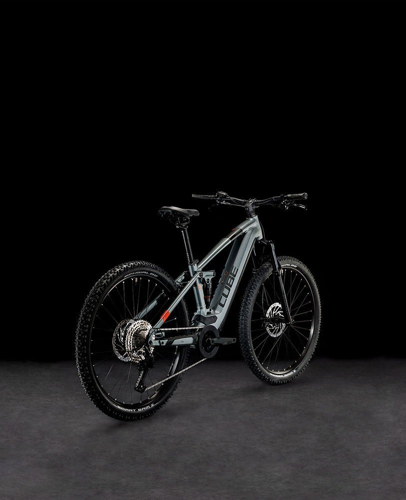 Außerdem hat Cube dem Bike hydraulische 4-Kolben Scheibenbremsen mit größeren Rotoren am Vorder- und Hinterrad spendiert, welche die griffigen 2.6 Zoll Schwalbe Reifen kontrolliert und sicher verzögern. Und dank RockShox Komplettfederung kleben Letztere förmlich auf dem Trail. Fazit: Wer Trail-Riding liebt, wird begeistert sein!