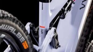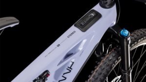 Der Rahmen des Stereo Hybrid ONE77 HPC ist wahrlich eine Klasse für sich, denn hier treffen 170 mm Federweg an der Front und am Heck auf ein Mullet-Set-up mit einem 29 Zoll Vorderrad und 27.5 Zoll Hinterrad. Damit werden Big-Mountain-Trail-Träume wahr! Wie immer bei CUBE maximal detailverliebt konstruiert auch der Rest: Integrated Cable Routing sorgt für einen supercleanen Look und reduziert den Wartungsaufwand auf ein Minimum. Dazu kommt ein Steuersatz zur Winkelverstellung, mit dem sich das Handling an individuelle Vorlieben und Anforderungen anpassen lässt. Außerdem haben wir den starken PowerTube Akku gleich über dem Bosch CX Motor sauber und formschön ins Carbon-Unterrohr integriert. Für einfachere Ersatzteilverfügbarkeit gibt’s ein UDH am Aluminium-Hinterbau – und weil wir auch eine Direct Mount Kettenführung verbaut haben, geht’s mit diesem Fully selbst bei schwierigen Bedingungen weiter, weiter und immer weiter.