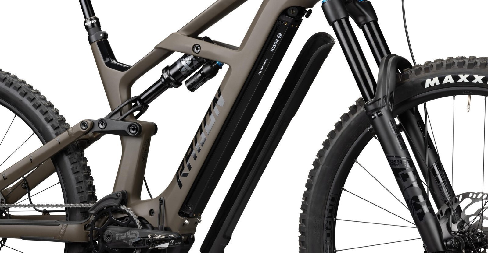 Der DEFT Rahmen ist eine absolute Augenweide und ist technisch mit neuesten Finessen ausgestattet. Mit 170 mm Federweg an Front und Heck bieten wir nicht nur ein reinrassiges E-Enduro, sondern auch enorme Reserven im Trail und sorgen somit für eine Menge Fahrspaß. Für den cleanen Look sorgen die komplett durch den Steuersatz verlegten Züge und Leitungen. Ebenfalls verfügt dieser über eine Block-Lock-Funktion, wodurch Folgeschäden im Falle eines Sturzes verhindert werden. Der flügelähnliche Überwurf, welcher Ober- und Unterrohr verbindet, punktet nicht nur optisch, sondern bietet auch in technischer Hinsicht ein absolutes Highlight. Sowohl der Carbon-Hauptrahmen als auch die Trunnion-Dämpferaufnahme bewirken eine Menge Steifigkeit und Stabilität. Wie auch beim RENDER bietet die untere Dämpferaufnahme gleichzeitig einen Teil der Wippe, die dem Rahmen eine einzigartige Kinematik und besonders hohe Stabilität des Hinterbaus verleiht. Der 750 Wh große Akku wird durch eine Patrone in das Unterrohr integriert, die für geräuscharmes Fahren und einen wackelfreien Sitz sorgt. Durch eine gummierte Abdeckung, die das Unterrohr abschließt, lässt sich der Akku problemlos und schnell entnehmen. Mit Hilfe der am Sitzrohr befindlichen Ladebuchse lässt sich der Akku ohne Entnahme laden. Das Schaltwerk wird am neuen, herstellerübergreifend genormten UDH Hanger montiert, der Speedsensor ist elegant in der Bremsscheibe und Kettenstrebe integriert, sodass der klassische Speichenmagnet der Vergangenheit angehört.